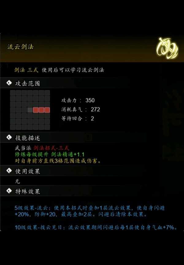 ⑥此时应该是5000血左右,并且会流云剑法(三式,品剑大会前师兄给的)和玄鸟剑式(二式,雷村残客任务做完给的)