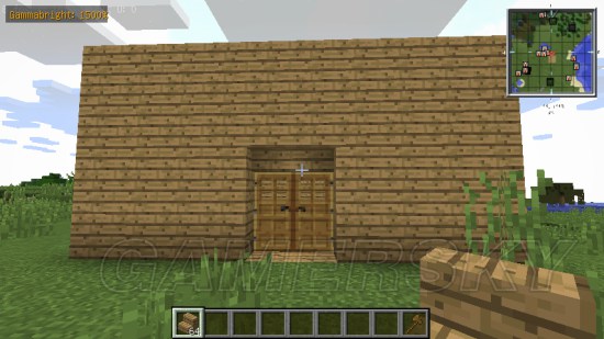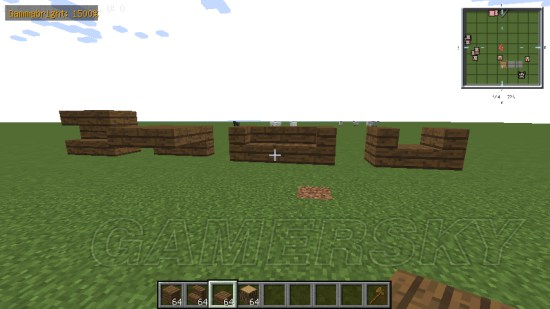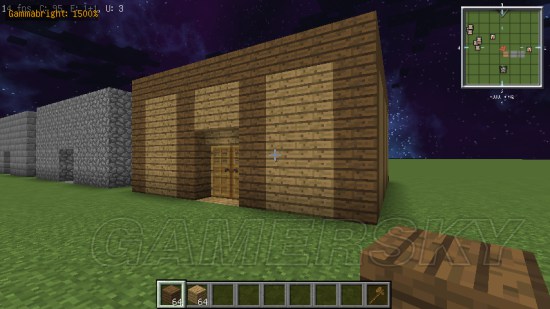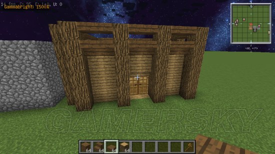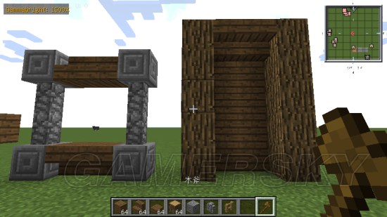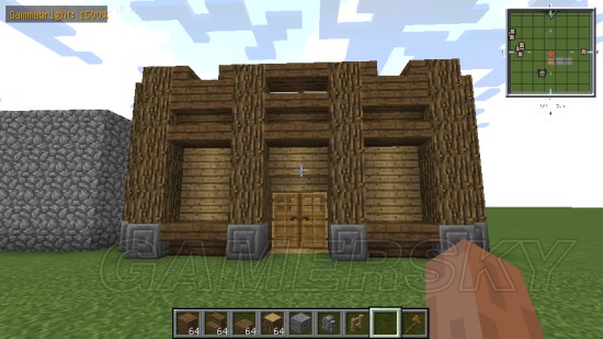 在图中可以看出,这个我在墙体表面增加了橡木原木,放了橡木的地方,就是凸出来的,现在的墙面就是凹的了,凹和凸放在一起,就有了凹凸对比,这种方法以后要经常用到