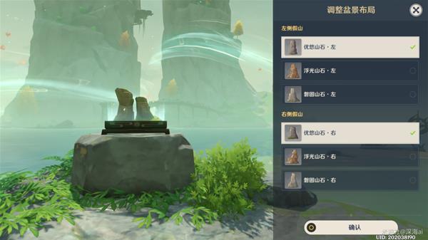 首先需要将盆景布局调整为浮光山石(稻妻山体)
