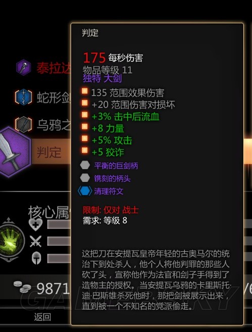 展开分享一把《龙腾世纪:审判》8级紫色双手大剑的取得方法。