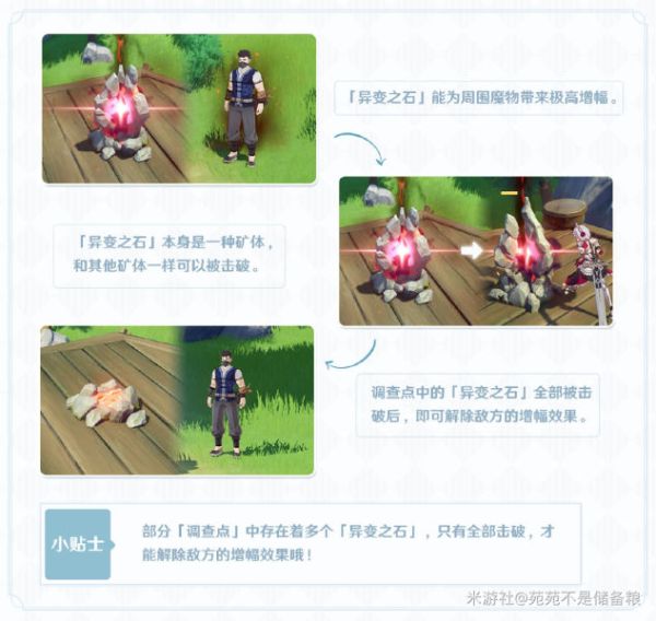 【异变之石】(眼熟吧,雪山的那石头变了个颜色__(ˇωˇ」∠)_)这个会强化周围的魔物,所以记得先把它打碎喔,这样魔物更好欺负