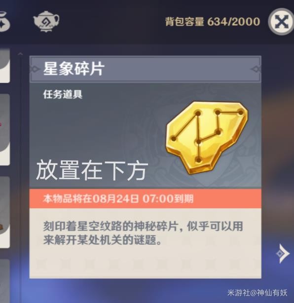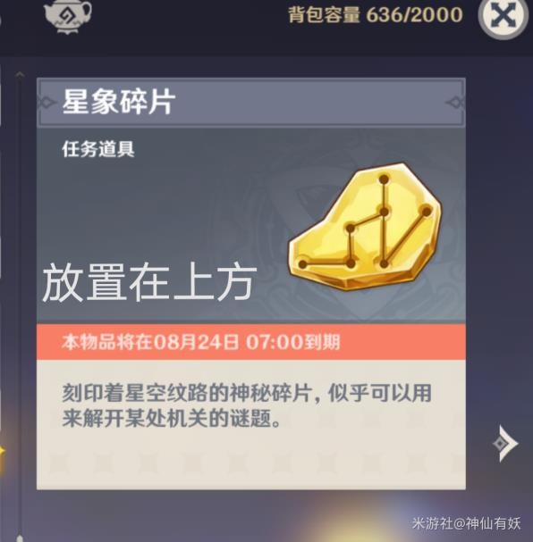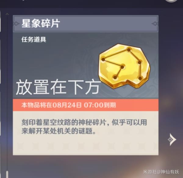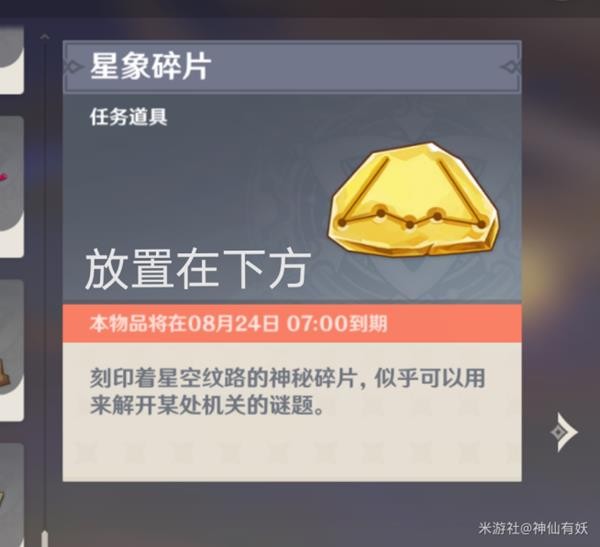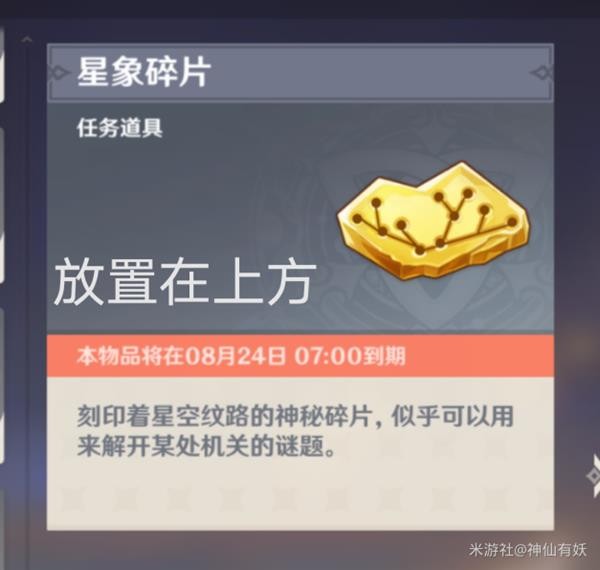 星象碎片:是莫娜秘境中可以通过拾取和精致宝箱中获取的任务道具,可以镶入【星辰影灯当中】