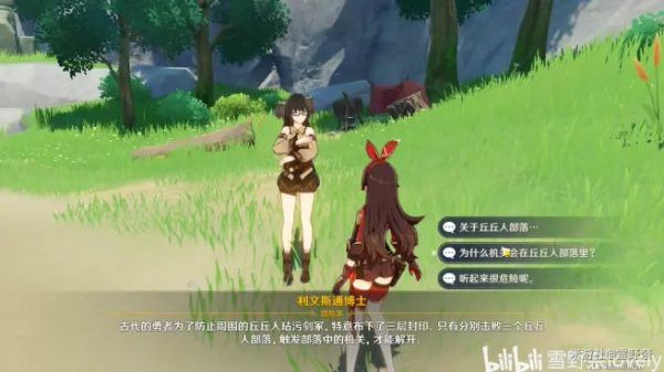 但是,封印还是没有解开,这时路边的一位“路人”给了我们提示,需要激活三个位于丘丘人部落里的机关。