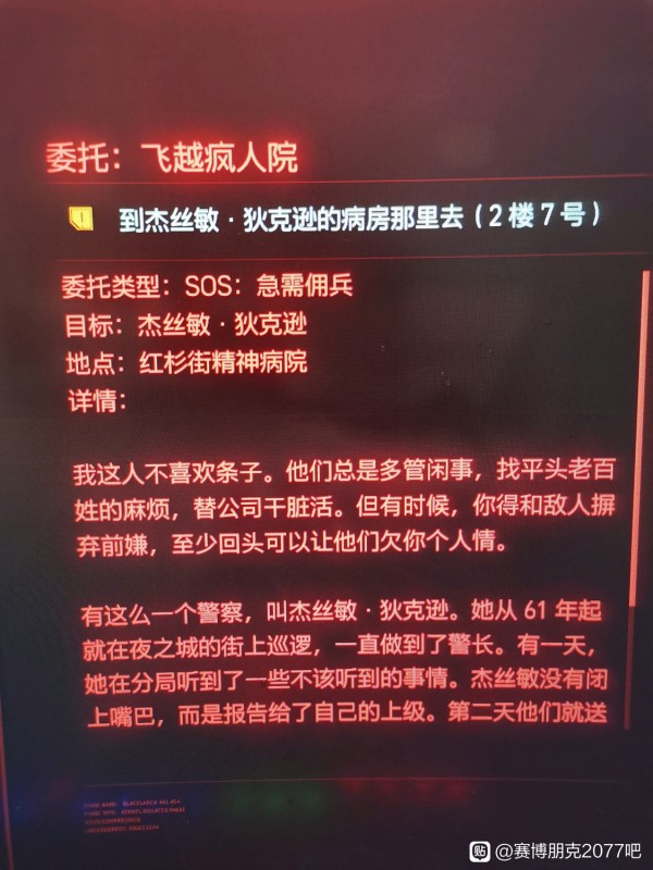 《赛博朋克2077》玩家们能够通过一些任务更加了解在夜之城的这些组织,飞跃疯人院就包含了军用科技和NCPD两股势力之间的联系,下面请看玩家“不冷静的大奔”分享的《赛博朋克2077》飞跃疯人院任务细节分析,希望能为各位玩家带来一些帮助。