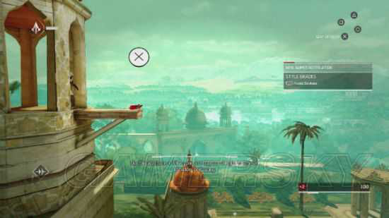 4.爬上毯子跳进窗户往右会看见第一个俯看点。按X跳下去,再按L2钻过大象雕像。
