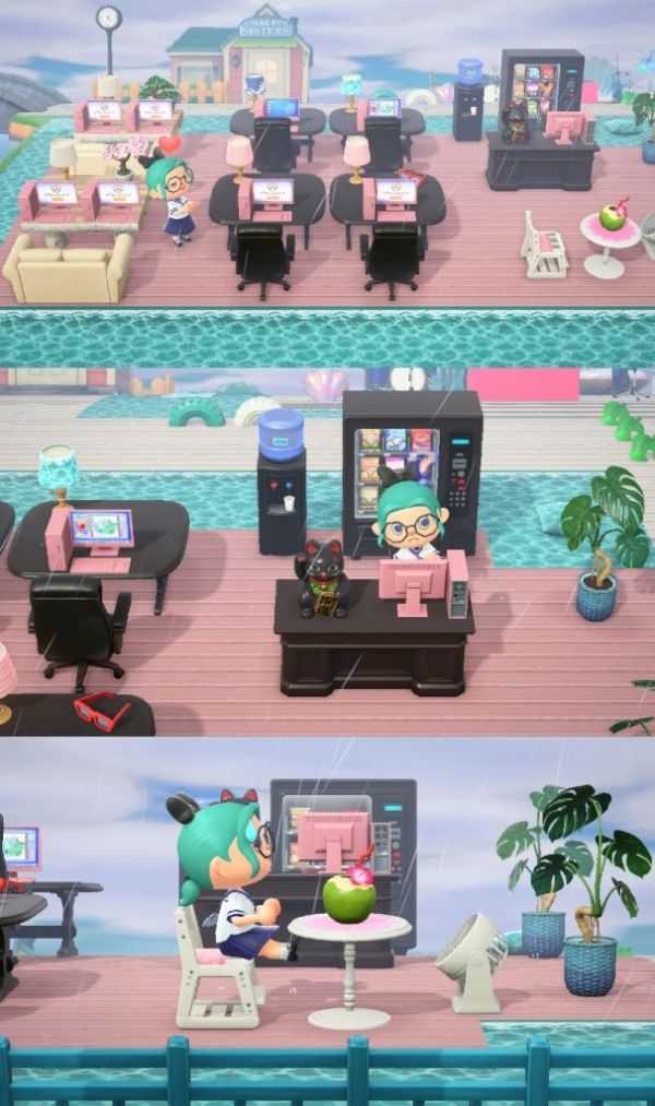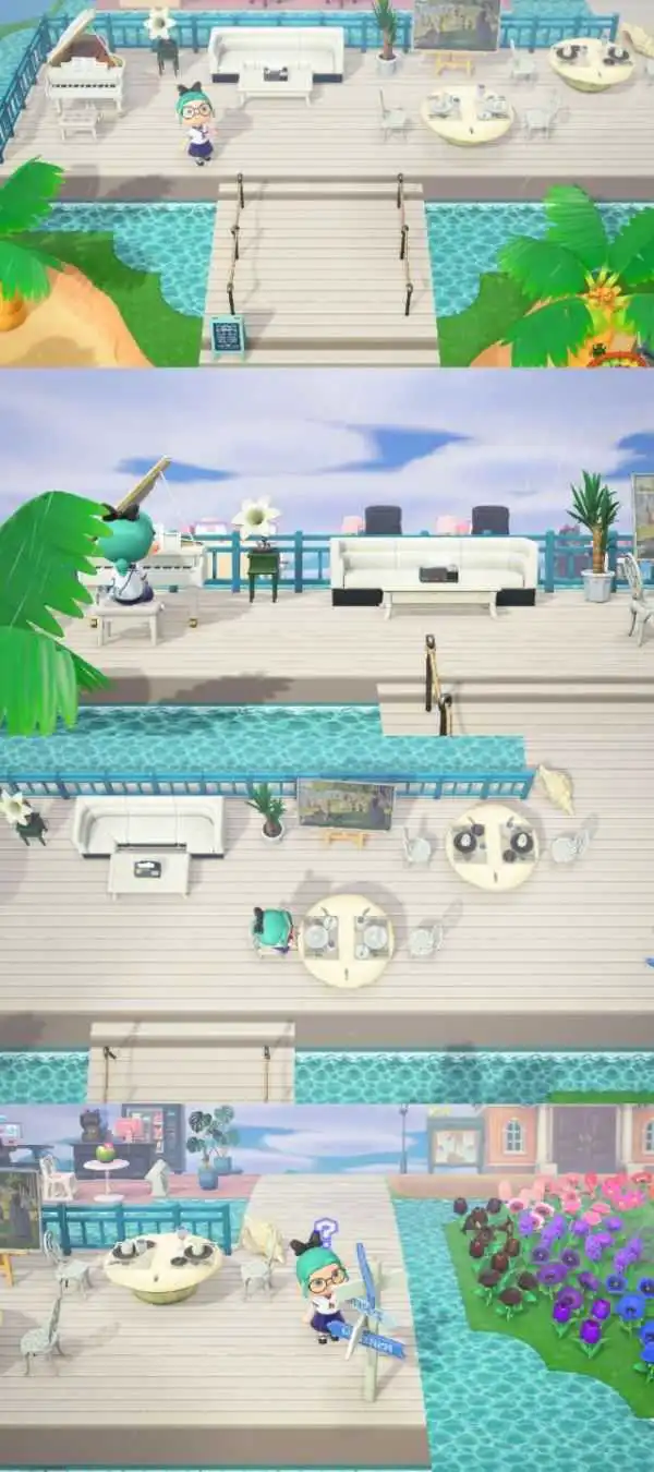 花了三个晚上极速岛建,把一整片岛建成了水上区域,主体是水面+木地板,营造夏天清凉的感觉。