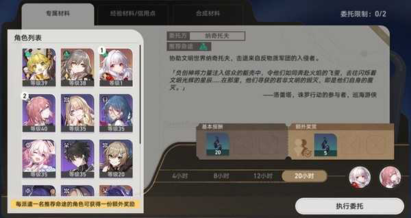 有两位推荐命途角色委托可以多拿两份额外奖励: