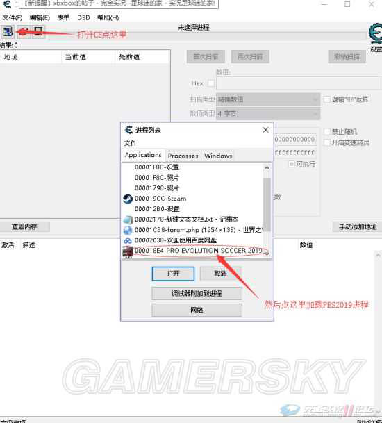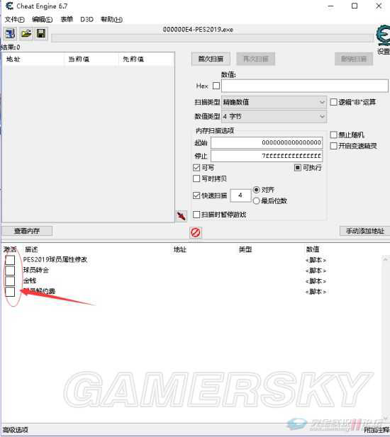 使用方法:打开CE,选择PES2019的进程,加载CT文件,具体看下面的图操作!进大师模式→我的球队信息→队伍名单,读取数据修改!