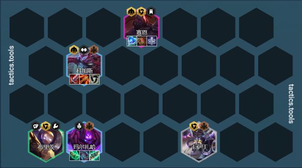 同时这套阵容对于转职非常重要,圣盾转和变异转都是最佳的选择,次之是帝国转职,帝国转可以给马尔扎哈增加伤害,并且补充乌鸦即可凑出3变异2黑法2帝国2巨像羁绊。当然这套玩法会比较适合肉虫子。