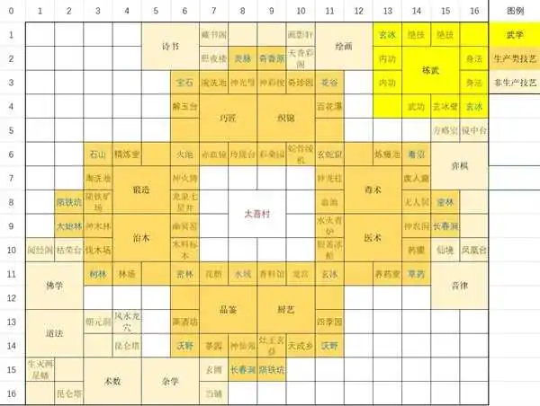 7、所有生产技艺(锻造,制木,巧匠,织布,艺术,毒术,厨房,品鉴)都摆在中间,方便操作且对称。