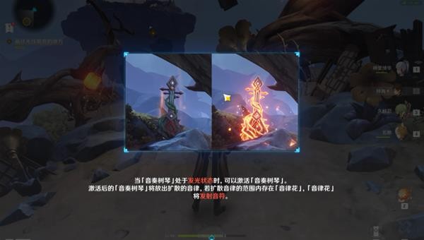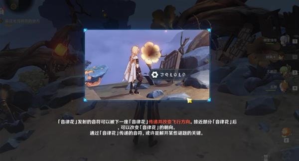 在这个浮岛之上,我们首先将此处的喇叭花调整到如图所示的位置,再去激活音奏树,通过音符的传递解锁风场。