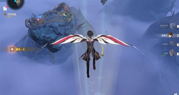 随着风场进入下一个浮岛上,在一番剧情对话之后,我们就在脚边发现了一个普通宝箱,拾取宝箱之后,我们往风场的方向跳前往下一个浮岛