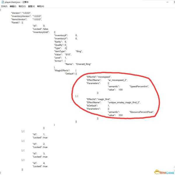 我们要的部分只有红圈的部分,把它复制进去胸甲的属性里面,注意加进去两个属性之间,不要加一头一尾,容易改错。