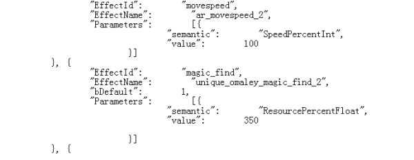 要注意的是同一个装备的属性的等级之间是用 }, { 隔开,不要用 }] 。这个虽然我没有测试过用}]隔开行不行,不过我尽量跟着原文本的格式改。