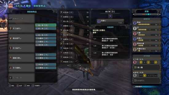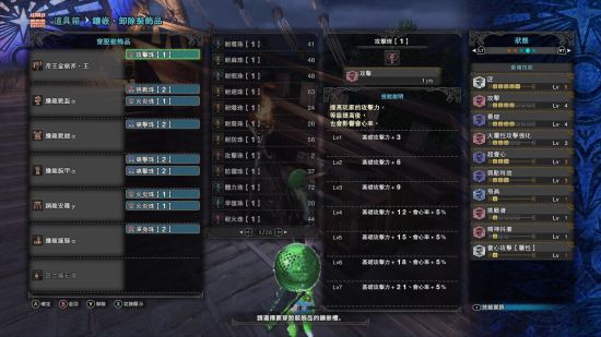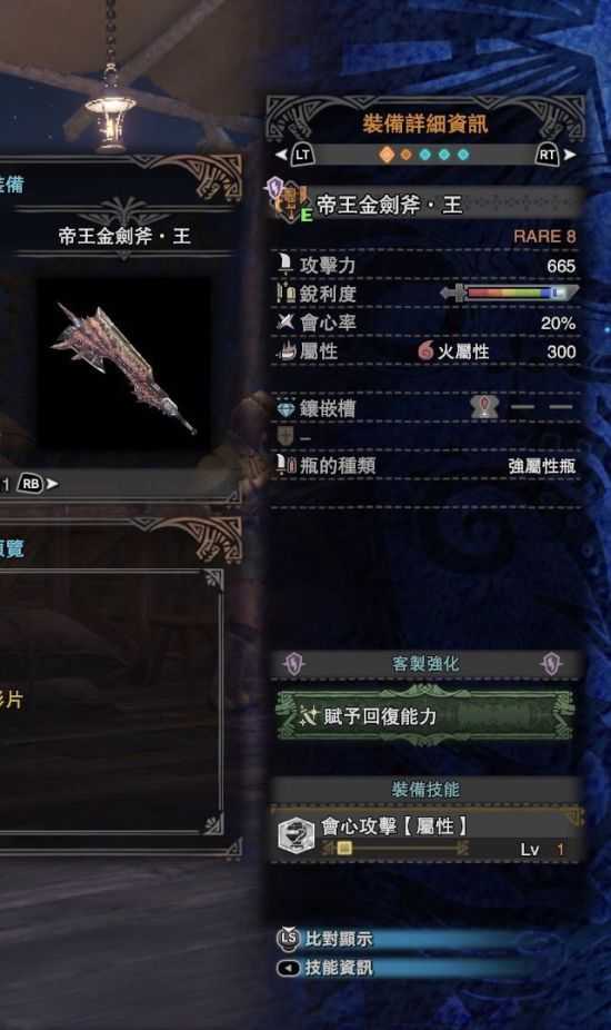然后是打王尸套龙的配装~原来的塞不下耐胀珠了,所以换成了帝王三件,95会心,挑战者发动后98会心。