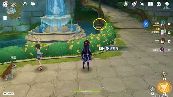 就是主线妮露跳舞舞台下方,位于大巴扎内部,找不到可以如下图先找到小狗斯旺。