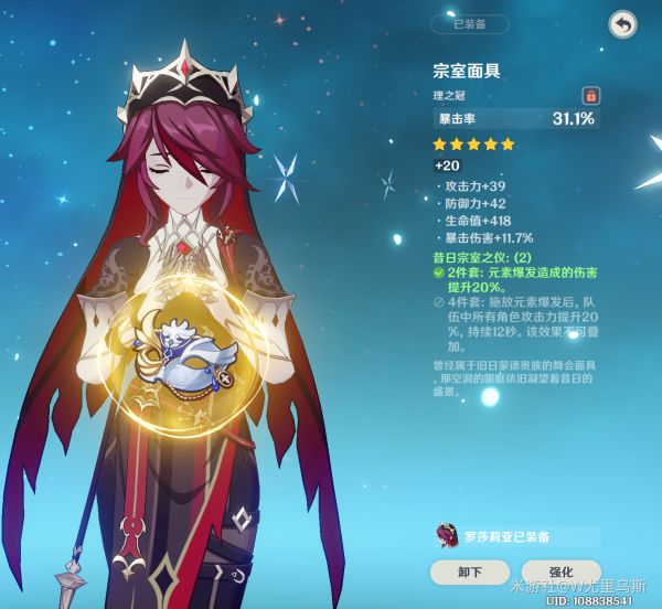 理之冠选择:暴击头/爆伤头,当暴击拐的话可以选择暴击头提升罗莎莉亚暴击。