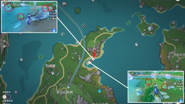 4,再补充一些点位,厄里那斯南边的锚点旁,就有3株柔灯铃可以拍