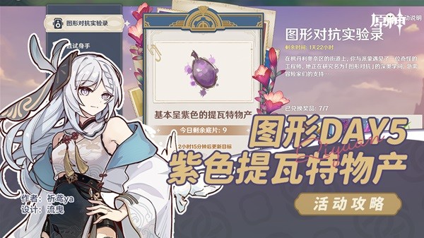 1,活动第五天的要求,是拍摄基本呈紫色的提瓦特物产