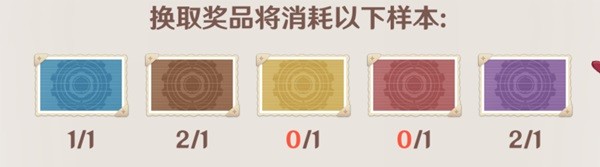 (2)奖励可以领取7次,需要交付5种样本各一张(拍出样本是随机的,也不需要找多种物产)