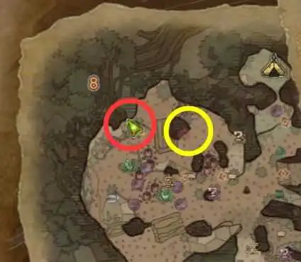 古代树地图左上角位置,红圈是毒妖鸟,黄圈是种植园半龙人。