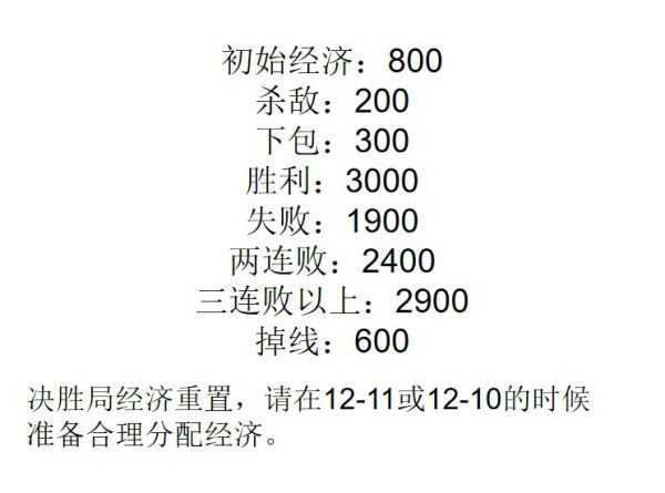 A是获胜队,B是第一回合失败队伍的经济,括号里是这回合大概用多少钱。