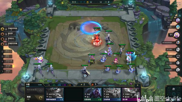 神盾使锐雯比较肉,但是二星锐雯缺伤害,玩了2把之后我不建议大家玩这个,很容易找不到沙皇补伤害,或者沙皇没合适装备被带走。我这把是追到了3星锐雯,搭配4夜幽都能吃鸡的。夜幽锐雯一定要有一个副c。