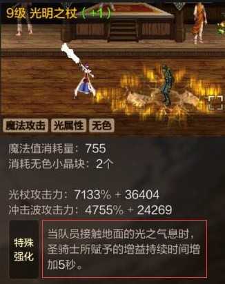【光明之杖】能攻击前方敌人,队友触碰残留在地面的神圣气息还能延长【勇气祝福】等增益的时间,合理使用能够输出还能提升队友身上的BUFF持续时间,减少【勇气祝福】的真空期。