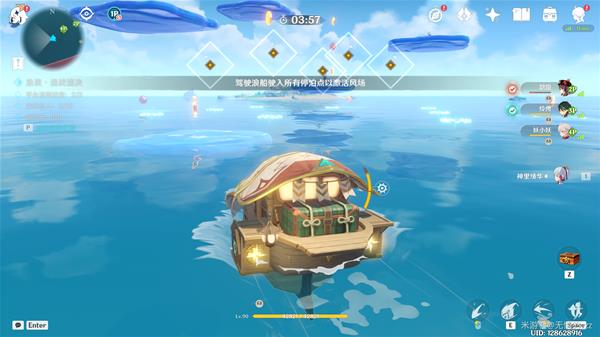 先让我们来看看玩法,我们需要开船驶入海域,当所有浪船停泊在专用停车位时,就可以形成风场,吃掉金币和打败丘丘人即可。