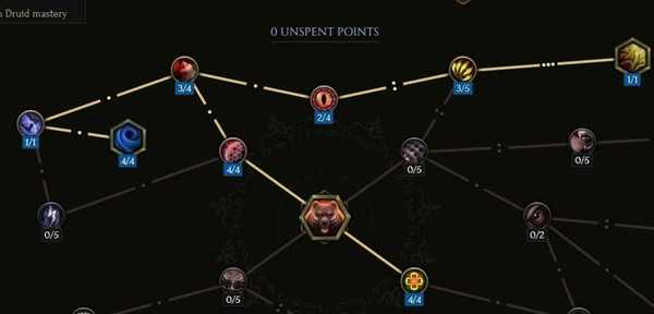 变熊的时候咆哮会套用震地战吼的技能树,稳定触发漩涡,以及横扫触发漩涡,点出猛袭后触发藤曼缠绕实现快速清怪。所以要堆高减cd,一个漩涡持续9.8s,战吼堆到3.3s以下cd,就能带来基本常驻12层漩涡,配合横扫打boss常驻16+漩涡。