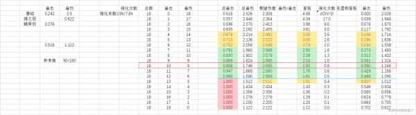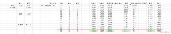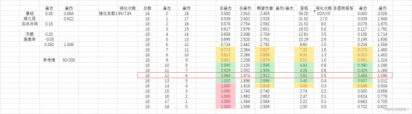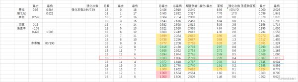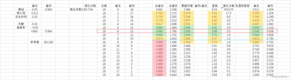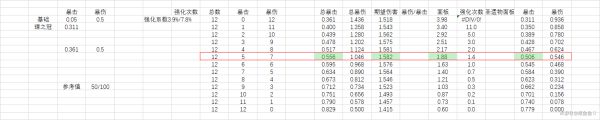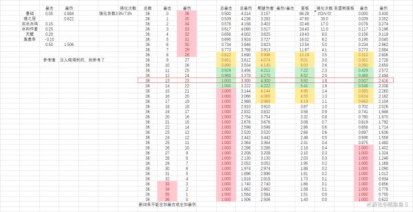 面板一列是角色面板数据的暴伤/暴击比值(不计算乱七八糟的buff)