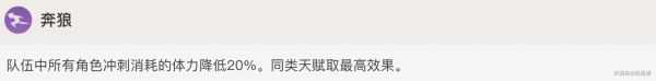 奔狼:该天赋在队伍中只会生效一个,同类中取最高值,在跑图时效果十分明显。