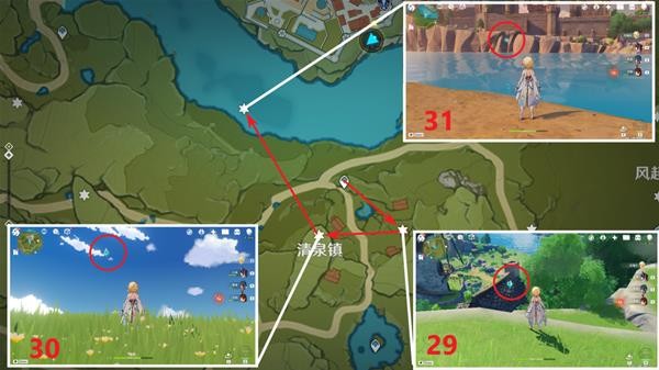 (31)位于水面上,可以用凯亚冻结水面过去。