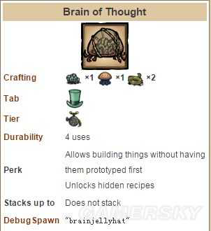 戴在头上可制作所有已解锁和未解锁科技,另外可以制作隐藏科技:黑曜石装备与物品。