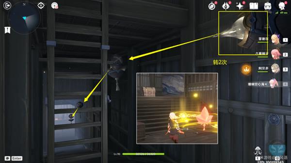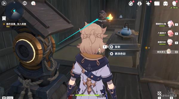 (2)回到拉杆处,再把拉杆调到收藏室,解锁收藏室里的精致宝箱2,按照下图所示,把传送机关调到箭头方向,就是调整2处,各一次即可。