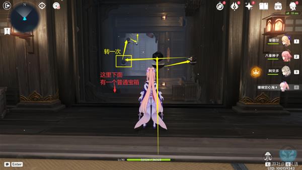 (2)寻找两个牌子「流韵御守」,放到大门两侧的神龛上,开启大门,两个牌子在右边通道,第一个牌子在入口处,第二个牌子在最里面,如图2,第二个牌子旁边就有一个精致的宝箱3。