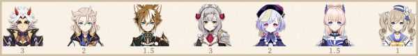 PS:输出角色培养优先度高于辅助/治疗向角色,所以荒泷一斗与诺艾尔的分数会较高。