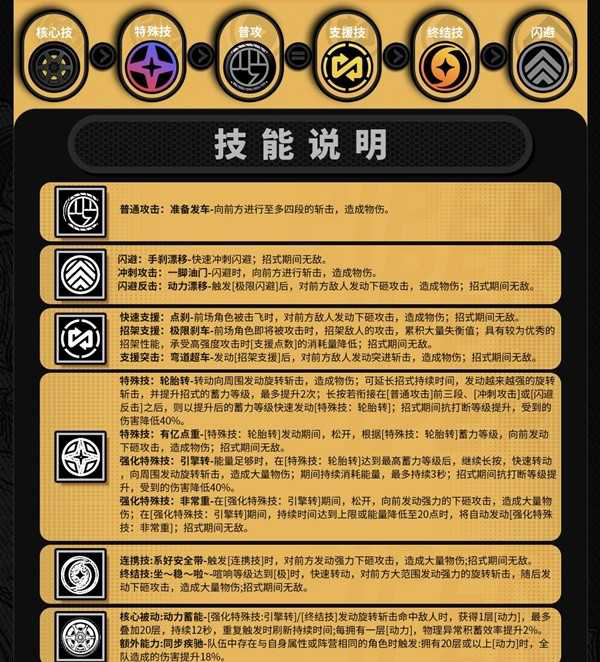 她的『强化特殊技:引擎转』和『终结技』都可以发动旋转斩击,一连串的高速旋转攻击能迅速命中敌人,并为自己积累『动力』层数。每层『动力』都会提高派派自身的物理异常积蓄效率,帮助她更快地打出『强击』,造成可观的伤害输出。而且,当她的『动力』层数达到20层或以上时,她的额外能力就会发挥作用——全体队友的伤害会提高18%。这意味着,只要派派能够稳定地保持高层数的『动力』,她就能让整个队伍的战斗力大幅度提升。