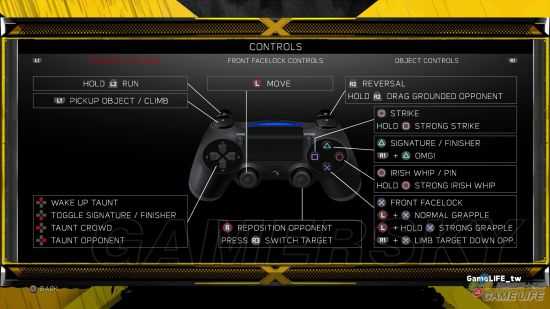 战斗系统方面,玩家可以看操作设定理解对战时的基本操作,同时系统也有准备辅助功能提示玩家特定时机该按什么钮。如果真的搞不清楚,就先记得方块钮(X 钮)主要是打击技,配合方向和按住与否能使出各种特殊技;R2(RT)是反击,只要显示出来的瞬间按下去躲过对手的攻击反揍回去;三角钮(Y 钮)的绝招跟圈钮(A 钮)的压制就等屏幕出现提示后再按,以这认知再去慢慢熟悉其它操作就好。