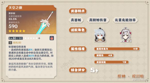 总的来说,天空之傲是一把非常不错的五星双手剑,拥有高额的基础攻击力与附加伤害,但也正因如此,天空之傲更适合那些以物理伤害为主的角色使用。