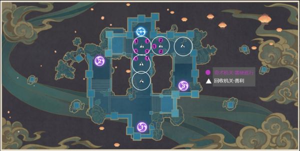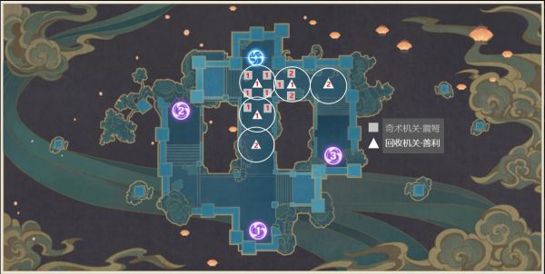 位置与雷一样,在第一波怪来之前摆好标1的机关,后在第一轮布置好标2的机关就可以挂机抽签了。
