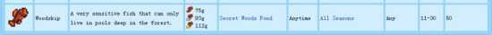可以看到,这是春天除了猫鱼鱼王以外最值钱的鱼了,虽然这鱼说是湖里有。但是南部森林的湖里只有小嘴的,大嘴的在矿湖才有,切记切记。