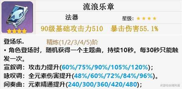 流浪乐章:四星优选,高额的暴击伤害加成,被动增加,那是六星神器。