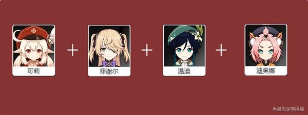 融化反应:可莉主C+甘雨副C+温迪+迪奥娜