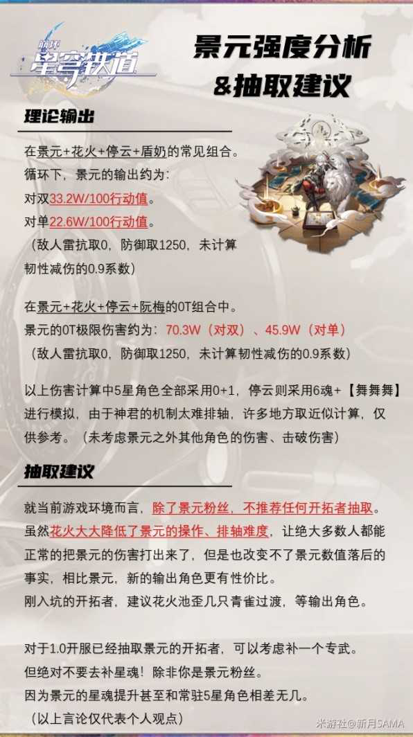 《崩坏星穹铁道》随着版本更新景元已经是老角色了,那么2.0版本他还值得抽吗?下面就来看由“新月SAMA”提供的《崩坏星穹铁道》2.0版本景元抽取建议,希望这篇文章能够帮助大家。