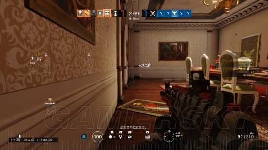 下图是我准备阶段结束后封完墙,捡完包,然后闲逛了一会儿,找个小角落再次蹲着刷分,白裤裆的技能可被探知的范围非常广,就以我蹲的地方来说,楼上楼下只要有小车经过就肯定会加分,所以没事找个狭小的房间开关一下技能还是比较爽的,啥事没干又等于杀了俩人