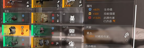 做绿装build首先头疼的一点就是如何分配套装部位降低天赋上的损失,由于要使用4件套的效果即使通过背心和背包上是圆圈弥补也不得不放弃至少2个天赋,所以这次反其道行,先让金装把必备位置拿掉然后让绿装填剩下的位置。