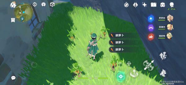现在我们回到蒙德,先来到望风山地,这里有四根胡萝卜,第一次采有宝箱