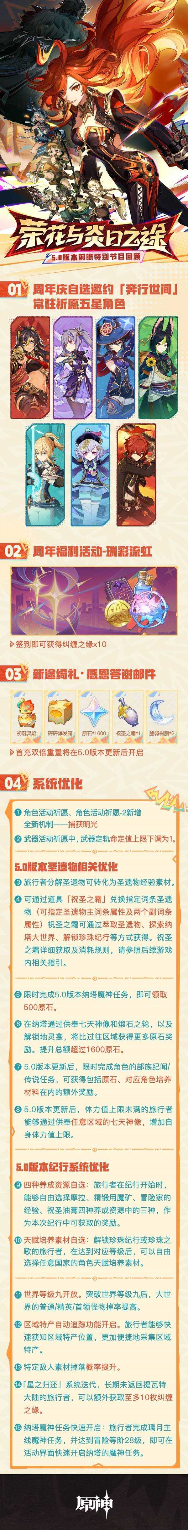 《原神》5.0版本「荣花与炎日之途」将于2024年8月28日上线。