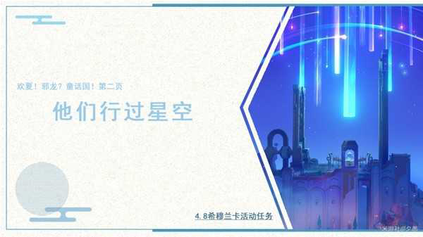 《原神》4.8欢夏邪龙童话国第二页任务他们行过星空完成步骤比较繁琐,其中还包含一些解谜要素。下面请看由“夕恙”带来的《原神》4.8欢夏邪龙童话国第二页任务攻略,希望对大家有用。